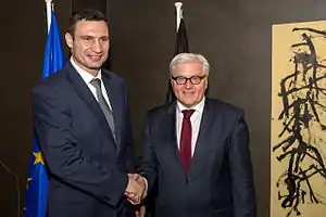 Ukrainian opposition leader Vitali Klitschko meeting German Foreign Minister Frank-Walter Steinmeier at the Munich Security Conference 2014.