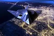 Invader was remastered with CGI for its DVD release. In this computer-generated scene, an F-117 stealth fighter flies over Washington, D.C.