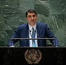 ![]() Ioannis Katsoyiannis giving a speech about the world water situation at the General Assembly of the United Nations | |