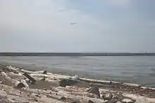 Two jetties, owned by the Government of Canada,[1] stretch out into the Strait of Georgia from Iona Island. The south jetty, Iona Jetty, juts out nearly 4 km (2.5 mi) into the Strait. Recreational visitors may walk or cycle on the twin gravel trails atop and beside the large sewage pipe that stretches the length of the jetty. The North Arm Jetty, while longer, is not as popular; it is a sandy bar (as opposed to the gravel and concrete structure of Iona Jetty) that stretches towards the northwest, running parallel to the Vancouver shoreline and terminating at the University Endowment Lands, almost directly across from the University of British Columbia campus, and visible from Wreck Beach.