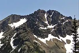Iron Mountain is a 6,826-foot (2,081-metre) elevation summit located in the eastern Olympic Mountains in Jefferson County of Washington state.[4] It is set within Buckhorn Wilderness, on land managed by Olympic National Forest. It is situated between Buckhorn Mountain, 0.58 mi (0.93 km) to the southwest, and Mount Worthington, 0.76 mi (1.22 km) to the northeast.[1] Precipitation runoff from Iron Mountain drains south into the Big Quilcene River, and north into Copper Creek which is a tributary of the Dungeness River. Topographic relief is significant as the southeast aspect rises 2,800 feet (850 meters) above the Big Quilcene River in less than one mile, and the north aspect rises 1,700 feet (520 meters) above Buckhorn Lake in one-half mile. Old-growth forests of Douglas fir, western hemlock, and western redcedar grow in the valleys surrounding the peak. The nearest community is Quilcene 11 miles to the east.