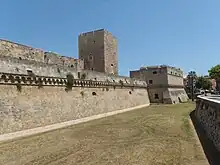 Keeping in mind her previous life experiences, Isabella also made it her priority to enhance the defences of the Castello Normanno-Svevo, ensuring that it was up to date with the form of warfare that had harmed Milan and Naples.[5] This emphasis on security turned out to be well placed. In July 1502, Gonzalo Fernández de Córdoba distributed a small portion of his forces to Bari, under Isabella's protection. This led to the French considering an attack on Isabella's Duchy, some argued it would be an advantageous way of conducting war against the Spanish. However, this was avoided when ideas of chivalry were taken into consideration.[62] Whilst Isabella may have avoided danger on account of her gender, it was a reminder that her hold on Bari was far from secure and her gender may not always excuse her. Aside from building up defences, the situation in Milan had taught the Duchess that political security was also essential; her will needed to be upheld at all times, never weakened or undermined. Therefore, she introduced more vigorous surveillance of public officials, ensuring that their notorious corruption was combated.[5]