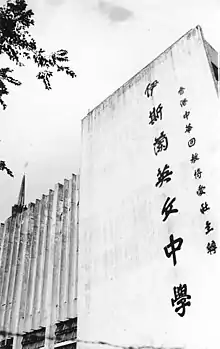 Founded in 1970 as Islamic College, the school was formally renamed Islamic Kasim Tuet Memorial College in 1997. It is founded and sponsored by the Chinese Muslim Cultural and Fraternal Association.[3] The school motto is composed of four key Chinese characters: Prolific, Academic, Affectionate, and Cooperative, which represent the fraternal nature and peace-loving spirit of Islamic teachings.[4]