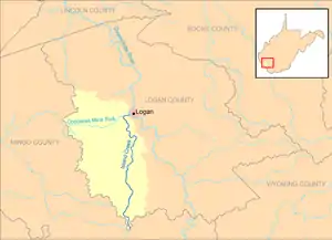 ![]() Island Creek and its watershed in Logan County, West Virginia | |