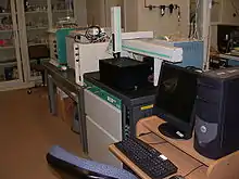 - ↑ Sessions, A.L.; Sylva, S.P.; Hayes, J.M. (2005). "Moving-wire device for carbon isotopic analyses of nanogram quantities of nonvolatile organic carbon". Analytical Chemistry. 77 (20): 6519–6527. doi:10.1021/ac051251z. PMID 16223235.