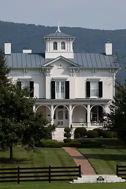 J.W.R. Moore House, also known as the J.W. Miller House and J.C. Biller House, is a historic home located at Mount Jackson, Shenandoah County, Virginia. It was built in 1871, and is a two-story, three-bay, L-shaped brick dwelling in the Italianate style. It features elaborate wood trim and a large, square belvedere with a tall finial. Also on the property are the contributing brick combination icehouse / smokehouse / summer kitchen (c. 1871) and a frame tenant house.[3] It was listed on the National Register of Historic Places in 2005.[1]