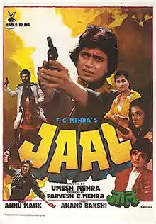 Jaal (transl.Trap) is a 1986 Indian Hindi-language action film, produced by F.C. Mehra, Parvesh C. Mehra under the Eagle Films banner and directed by Umesh Mehra.[1] It stars Rekha, Mithun Chakraborty, Mandakini, Moon Moon Sen[2] and music composed by Anu Malik. The film was remade in Telugu as Kirai Dada (1987).