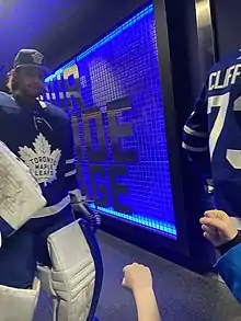 Initially acquired to strengthen team goaltending depth and serve as a backup to starting netminder Frederik Andersen, Campbell quickly emerged as a skilled goalie in Toronto and became the team's starter the following season, overtaking Andersen's role through strong play. Following his arrival in Toronto, Campbell experienced much success and became a fan favourite, setting several records and joining the league leaders in goaltending statistics. On April 7, 2021, Campbell set a Maple Leafs record for consecutive wins by a goaltender, with 10. The previous franchise record of 9 was shared by Felix Potvin, Jacques Plante and John Ross Roach.[39] He additionally tied the league record with Montreal Canadiens goalie Carey Price for consecutive wins to start a season, and later setting a new and final record of 11 in the following game on April 10, 2021, when the Leafs beat the Ottawa Senators 6–5.[40] Campbell would remain the team's starter for the rest of the season, helping them qualify for the playoffs, where he would make his post-season debut. Despite strong play from the netminder, the team would lose in the opening round, three games to four against the Montreal Canadiens.[41]