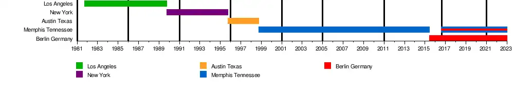 From June 2015 through August 2016 Cooper resided full-time in the Charlottenburg-Wilmersdorf borough of Berlin, Germany and continues to commute between the U.S. and Germany and makes his home in both Schöneberg, Berlin and Memphis, Tennessee. He serves as a staff arranger, musical director and production assistant for Marc Secara and the Berlin Jazz Orchestra for live performances and recording sessions.[53][54] He also assisted in arranging for the Collegium musicum Potsdam Symphony Orchestra and the Compass Big Band.[55][56][57] Cooper has conducted music and performed in venues such at the Wühlmäuse Theater, Heimathafen Neukölln and Kunstfabrik Schlot.[58] He also served as a Visiting professor and Artist-in-residence at the SRH Hochschule der populären Künste and is currently a visiting professor at the Universität Erfurt.[59][60] He has worked closely with German jazz, pop and Schlager personalities such as Marc Secara, Jiggs Whigham and Marc Marshall.[61][62][63][64] Since 2018, Cooper has collaborated with German, film documentary director Anne-Kathrin Peitz. He is featured on the award winning The Unanswered Ives documentary and is and also featured on the 2022 television documentary about the life and music of composer Paul Dessau.