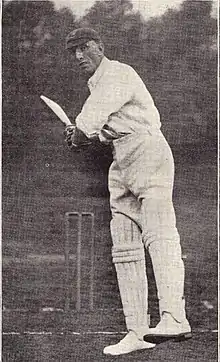 A son of Essex's first regular wicket-keeper, Thomas Russell, and a cousin of Kent bowler Tich Freeman, Russell first played for Essex in 1908 but did not establish himself until 1913. In that year he reached 1,000 runs and repeated this for the next three years, but it was only a knock of 197 against Middlesex at Lord's in 1920 that elevated Russell to the rank of a top-class batsman. His 2,432 runs was third-highest in the country behind Hobbs and Hendren and he was an automatic choice for that winter's Ashes tour. Though the failure of England's professional bowling on the rock-hard Australian wickets meant England lost all five Tests, Russell did well with an average of 58.42 for all matches, including 135 at Adelaide. However, he wasn't selected for any of the first three Tests in 1921 when England were largely outclassed by Warwick Armstrong's Australians. He was brought in for the fourth Test and scored 101.[1] Then he scored 102 not out in the final Test.[2] His batting helped England draw the last two Tests, although Australia won the series 3–0.