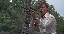 ![]() The Jackal (Edward Fox) practising with his newly customised sniper rifle. | |