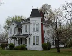 The Jackson–Herget House is a historic house at 206 South 4th Street in Paragould, Arkansas. It is a 2+1⁄2-story wood-frame structure, clad in aluminum siding. It has asymmetrical massing typical of the Queen Anne period, with a variety of gables, projecting sections, porches, and a three-story tower topped with a steeply pitched hip roof and wrought iron railing. It is one of the finest Queen Anne houses in Greene County, despite the aluminum siding, which was added in such a way to match the earlier clapboarding and without destroying some of the trim.