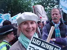 She was very active in the campaign against the Health and Social Care Act 2012.[3] In particular she was vocal in the campaign against the BBC for failing, she claimed, to give sufficient exposure to the threat to the NHS.[4]