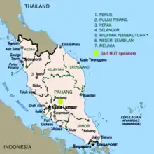 Jah Hut people are one of the Orang Asli tribes living in Pahang, Malaysia. As of 2000, the population of the Jah Hut people are 2,442[3] and by 2005, it is estimated that there are approximately 4,000 people[4] living in 11 kampungs (villages) that are located along the west bank of the Pahang River from the north in Jerantut to the south in Temerloh, Pahang.