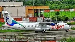 In 2016, the Government of Maharashra signed up for the Ministry of Civil Aviation's regional connectivity scheme (RCS) called UDAN that would fast-track the development of ten regional airports in the state including Jalgaon.[8] Under UDAN, Air Deccan won the contract to start flights from Jalgaon to Mumbai. The airline flew the first ever scheduled commercial flight into Jalgaon airport on 23 December 2017.[9] However the airline stopped the flights within months, citing technical issues.[10] The Government cancelled the contract and the route was allotted to TruJet.[11] TruJet started operating from Jalgaon from 1 September 2019.[12]