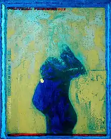 The work hung in the lobby of the Time-Life building for around five years.[8] Gill’s sources have always come from the present. His recognition as an artist has not only been based on the portraits of famous personalities such as John F. Kennedy, Marilyn Monroe and the Beatles, but to a large extent on his works which turned the political power structure and the war itself into question. An important work from this period is Political Prisoner. The series shows the silhouette of a pregnant woman. Her body is the symbol for the longevity of the people and for the possibility of a new beginning of each generation, freed from the mistakes of their parents' generation. But simultaneously, Gill seems to suggest that even the unborn child is caught: Born in the cauldron of a nuclear family, the younger generation could be the unfortunate heir of the world, which they did not even form themselves, but by which it was itself formed.[10]