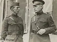 McRae was commissioned in the 3rd U.S. Infantry Regiment (The Old Guard) and performed frontier duty from 1886 to 1888. During the Spanish–American War, he was in the Battle of El Caney in Cuba, and he also served in the Sanitary Corps, for which he received his first Silver Star Commendation.[4][5] He received his second Silver Star during the Philippine Insurrection and was recommended for a brevet promotion. From 1905 to 1908, he served on the General Staff, and in 1911, he graduated from the United States Army War College. McRae served in the Adjutant General's Department from 1913 to 1917, and on August 5, 1917, he was promoted to brigadier general and commanded the 158th Depot Brigade at Camp Sherman, Ohio.[6] In addition, he commanded the 9th Brigade of the 5th Division. He was promoted to major general on April 12, 1918, and commanded the 78th Division (AEF) throughout its period of active service on the Western Front until June 1919, when it was inactivated after returning to the United States.[4] For this, he earned the Army Distinguished Service Medal, the citation for which reads: