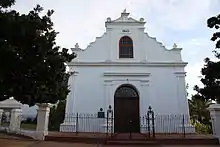Despite Weber's role in the establishment of Jamestown, it is not a mission station per se.[29] The Rhenish Mission Church built in 1823 is situated next to Die Braak,[30] the common in the Stellenbosch town centre.[10][23][31] A small church was inaugurated in Jamestown in 1923, which initially also served as a school for the area.[2][24] Some of the villagers served in the Second World War.[32] In 1946 JGC Williams opened the General Dealer in Webersvallei Road, which closed its doors in 2012 when his sons retired.[33] Jamestown was designated a coloured area under apartheid segregation laws, and the majority of the residents were not subjected to forced removals.[10][13][34] The 1970s saw the first tarred road and the arrival of electricity for those who could afford it.[12] Dominoes were traditionally played by the men in the village.[27] The Burnley soccer club established in 1932 and the Young Gardens soccer club in 1940 merged in 1973 to form Jamestown Aurora Athletic Football Club.[32][35] Jamestown has a long musical tradition which is a source of community pride. Christmas is a particularly busy time for the Jamestown Christian string orchestra established in 1967, which was preceded by the Jamestown tickey band.[36]