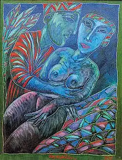 He is an artist whose work bridges two rich and vastly different cultures. On the one hand, there is his European heritage, on the other, the profound influence of Africa, which is now his home. This duality brings an exciting and unusual dimension to his work. His images reveal a series of archetypal symbols derived from various ancient cultures, reflecting his belief that it is these 'primitive' symbols that unite man across time and different civilizations. His aim is to bring the viewer into the spirit of Africa, to encourage a better understanding of the African identity.