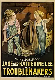 The Lee sisters were the children of American juggler Tommy Banahan and Irene Lee, an Irish dancer and occasional actor.[3][4][5] During Tommy and Irene's European tour, Katherine was born in Berlin, Germany on February 14, 1909, and Jane born February 15, 1912, in either Dublin, Ireland,[3] or Glasgow, Scotland.[6] The sisters appeared in the original Neptune's Daughter, filmed in 1914. In 1915, Jane appeared with Valeska Suratt in The Soul of Broadway at Fox Studios. They both appeared in A Daughter of the Gods (1916), with Katherine's dramatic performance earning praise as a "child prodigy" and a "three-foot Fiske."[7] In 1917, Jane and Katherine starred in two of Fox's "kiddie films", Troublemakers and Two Little Imps.[8] In 1919, the Lee sisters made the list in the Top Ten Money Making Stars Poll.[9]