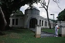 The Japanese Hospital or Saipan Byoin is a historic World War II-era hospital complex on Route 3 in Garapan, a village on the island of Saipan in the Northern Mariana Islands. The three concrete buildings are the largest Japanese-built structures to survive the war. The main hospital building is an L-shaped structure with a domed entrance at the crook of the L. A second, smaller building housed the pharmacy, while the third is an underground circular chamber of unknown purpose. All were in deteriorating condition when surveyed in the early 1970s.[2] The complex has since undergone restoration, and the main hospital building now houses the Northern Mariana Islands Museum.