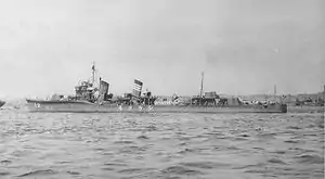 Shirakumo (白雲, ”White Cloud”)[1] was a Fubuki-class destroyer and the eighth in a class of twenty-four vessels built for the Imperial Japanese Navy following World War I. When introduced into service, these ships were the most powerful destroyers in the world.[2] They served as first-line destroyers through the 1930s, and remained formidable weapons systems well into the Pacific War.