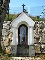 - There is a chapel-shrine set against a wall southwest of the church. The shrine contains a statue of Saint Francis.
