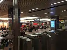 The station is connected to the concourse level of Fashion District Philadelphia, a shopping mall that replaced the Gallery at Market East mall in September 2019. The station was connected to the Gallery II (the mall's 1984 expansion) section of the mall,[16] and the design of the new mall preserved the connection to Jefferson Station.