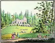 "It is what in England is commonly called an ornamented farm, and the grounds are out altogether in the English taste. Nature is indeed here so extremely beautiful of herself that she will condescend to receive very little decoration from human ingenuity. Here are lawns and grottoes and cascades and running streams and parks which scarcely require anything more than enclosure to make English gardens."