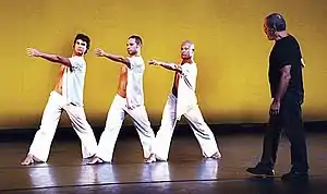 In 1975, Vieira and fellow choreographer/performer Loremil Machado became the first capoeira mestres to live and teach in the United States.[1][2] Vieira states that their first jobs in New York were doing capoeira demonstrations in Bronx public schools[3] and that he spent the summer of 1975 doing weekly demonstrations in Central Park.[4] His early supporters included choreographer Alvin Ailey,[5] off-Broadway theater pioneer Ellen Stewart,[6] and Brooklyn schoolteacher and martial artist Robert Cooper.[7] In the 1970s, Vieira and Machado taught and performed in multiple locations across New York City, with notable venues including the Clark Center for the Performing Arts[8] and "for four or five years," a weekly performance set to jazz music at the Cachaça nightclub on East 62nd Street.[9][10]