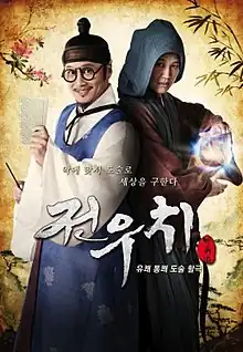 Jeon Woo-chi (Korean: 전우치; Hanja: 田禹治) is a 2012 South Korean fantasy period television series,[1] starring Cha Tae-hyun as the titular Taoist wizard who becomes an unlikely hero to the people of Joseon. It is based on the same folktale as the 2009 movie of the same name, but has a different story.[2][3][4] Also starring Uee, Lee Hee-joon, Baek Jin-hee, Kim Kap-soo and Sung Dong-il, it aired on KBS2 from November 21, 2012 to February 7, 2013 on Wednesdays and Thursdays at 22:00 for 24 episodes.
