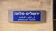 Jerusalem–Malha railway station (Hebrew: תחנת הרכבת ירושלים – מלחה, Tahanat HaRakevet Yerushalayim–Malha; Arabic: محطة أورشليم – المالحة) was one of two Israel Railways termini in Jerusalem, the other being Jerusalem–Yitzhak Navon railway station. The station is located in the southern neighborhood of Malha, across from the Jerusalem Shopping Mall, Pais Arena and Teddy Stadium.