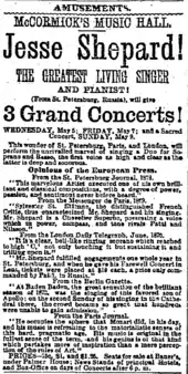 - 1 2 "A History of pianist, Spiritualist Jesse Shepard". Villa Montezuma Museum. Retrieved July 18, 2017.