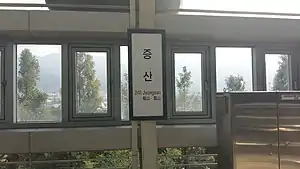 Jeungsan Station (Korean: 증산역; Hanja: 甑山驛) is a station on the Busan Metro Line 2 in Mulgeum-eup, Yangsan, South Gyeongsang, South Korea.