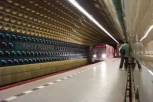 Jiřího z Poděbrad (Czech pronunciation: [ˈjɪr̝iːɦo ˈspoɟɛbrat]) is a Prague Metro station on Line A, located in Vinohrady, Prague 3. In January 2023 it closed for reconstruction.