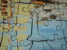 A jigsaw puzzle (with context, sometimes just jigsaw or just puzzle) is a tiling puzzle that requires the assembly of often irregularly shaped interlocking and mosaicked pieces, each of which typically has a portion of a picture. When assembled, the puzzle pieces produce a complete picture.