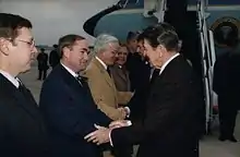 Among the infrastructure projects that took place during Kernan's tenure as mayor was the shifting of South Bend's South Shore Line station from a facility shared with Amtrak to a new location at the city's airport, which opened in 1992.[42] In 1993, Kernan testified before congress that this move had been partially responsible for a 73% increase in ridership from South Bend, attributing this to the fact that the previous location of the station was in an area, "isolated and very difficult and perceived to be unsafe" [42] Plans to move the South Shore Line station to the airport, creating an air, bus, and rail intermodal terminal, had dated back to the 1970s.[43]