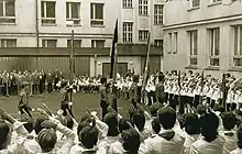 The school was severely damaged in World War II. No damage was done during World War I but in 1945 all the windows, the tower on top of the building, and parts of the roof were destroyed. Several classrooms caught fire during these bombings. A few repairs were done following the war, but it was completely rebuilt in 1972: the roof was restored and a new heating system was installed. Further refurbishment work started in 1999 and was completed in 2000.