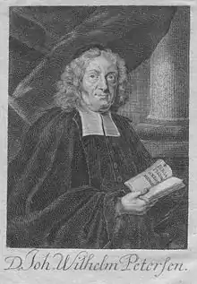 Johann Wilhelm Petersen (1 July 1649 in Osnabrück – 31 January 1727 in Zerbst) was a German theologian, mystic, and Millennialist.
