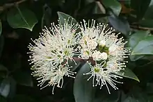 While searching for liverworts in 1975, Bartlett came across an unusual species of rātā growing at Radar Bush, 9.5 km south-east of Cape Reinga. His attention was drawn to the tree’s distinctive bark, which is spongy, whitish and flakes easily, but he was unable to reach any branches. He took bark fragments to Victoria University botanist John Dawson, who was unconvinced that the tree was unusual. Bartlett returned to the area with a rifle, with which he was able to shoot off a branch. It was ten years before its white flowers were seen by scientists in 1984, appearing ‘like snow over the tree crowns’ and allowing the new species to be formally described and named Metrosideros bartlettii, known as Bartlett's rātā, or rātā moehau in Māori.[5][6][7] Bartlett's rātā is now grown as a garden plant, but only 13 adult Bartlett's rātā are known to still exist in the wild.[8]