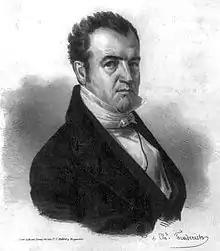 Initially an ally of Andrew Jackson, Bell turned against Jackson in the mid-1830s and aligned himself with the National Republican Party and then the Whig Party, a shift that earned him the nickname "The Great Apostate".[2][3] He consistently battled Jackson's allies, namely James K. Polk, over issues such as the national bank and the election spoils system. Following the death of Hugh Lawson White in 1840, Bell became the acknowledged leader of Tennessee's Whigs.[1]