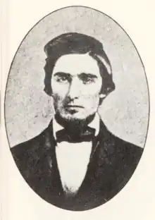 - John Edwin Cook, sometimes spelled Cooke, 29, born in Haddam, Connecticut,[70] but was from Pennsylvania.[13]: 24 He had been a teacher.[71] He was Brown's second in command, by one report,[72] had been with Brown in Kansas,[7]: 6 and had lived undercover for over a year in Harpers Ferry.[7]: 2 He was described as "a man of some intelligence",[72] "a quick-witted, intelligent man",[73] from a good family, who had studied law and taught school.[74][75] He escaped into Pennsylvania after the raid, but Governor Wise offered a reward of $1,000,[76] and he was soon captured.[77][78] His attorney at the time, Alexander McClure, published lengthy recollections.[79] A band played as he was taken from the jail in Chambersburg to the train that would take him to Charles Town for trial.[80]