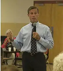 Carney was the Democratic nominee for Delaware's at-large seat in the United States House of Representatives in 2010. He faced Republican Glen Urquhart, Independent Party of Delaware nominee Earl R. Lofland, Libertarian Brent A. Wangen, and Blue Enigma Party nominee Jeffrey Brown. The seat had been held since 1993 by Republican Michael Castle, who declined to seek reelection to the House in order to run for the U.S. Senate seat once held by Vice President Joe Biden. In the first week of October, Fairleigh Dickinson University's PublicMind Poll released the results of its opinion research, showing Carney with a 15-point advantage over Urquhart, 51%-36%.[9] Days before the election, a second Fairleigh Dickinson poll showed Carney leading by 17 points, 53% to 36% among likely voters.[10] Carney won the seat by 16 points, 57%-41%, and took office on January 3, 2011. His victory was one of the three seats Democrats gained in a year when they lost a net 63 seats to the Republicans.
