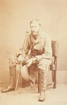 The Centre Column's mounted component included around 100 regulars of the Imperial Mounted Infantry, consisting of men with riding experience from the infantry. This force had been led for some time by Lieutenant Edward Browne of the 24th Regiment of Foot who was well-liked and his sub-ordination to Russell caused resentment among the men of the unit.[11] The majority of the mounted component was formed of units raised by the colonial government of Natal. These men had expected to be commanded by John Dartnell of the Natal Mounted Police, a former British Army major and Indian Mutiny veteran turned Natal farmer. The colonial volunteers, who had no obligation to serve outside of Natal, had agreed join Chelmsford's forces on the condition that they approved of their commander. When Russell was appointed all of the officers of the Natal Mounted Police handed in their resignations in protest.[17] The controversy was reported by the press in Pietermaritzburg, causing embarrassment for Chelmsford.[16] Chelmsford's solution was to declare that Dartnell was invaluable to him as a personal advisor and to appoint him to a position on his staff.[16] The Natal Mounted Police officers rescinded their resignations when Dartnell asked them to do so as a personal favour to him.[17]