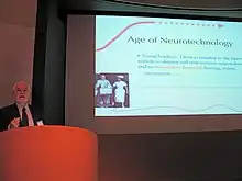 Donoghue is a founder of the discipline of neuroprosthetics and coordinated the team that developed the brain–computer interface 'BrainGate' to restore movement for people with paralysis.[6] He was a co-founder of an early neurotechnology startup company, Cyberkinetics.