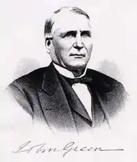 John Green (May 20, 1807 – August 31, 1887) was an Indiana lawyer, judge and politician. He was a member of the Whig Party (United States) until its dissolution, at which time he joined the early modern day Republican Party (United States). He served as a member of the Indiana State Senate (1857–59, 1869–71), as a common pleas court judge (1860–64), and as an alternate delegate to the Republican National Convention (1868).