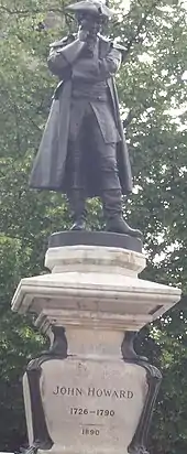 Howard became the first civilian to be honoured with a statue in St. Paul's Cathedral, London.[15] A statue was also erected in Bedford, and a further one in a John Haviland-designed monument in Kherson. His bust features in the architecture of a number of Victorian prisons across the UK, such as at Shrewsbury. He was elected a Foreign Honorary Member of the American Academy of Arts and Sciences in 1790.[16]