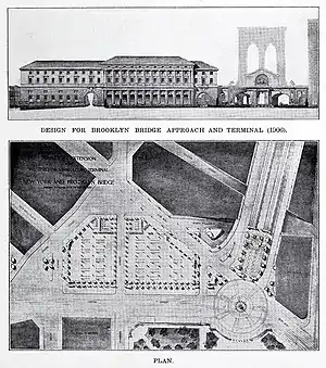 Carrère was most active in the firm's large civic and commercial projects, including the House and Senate office buildings on Capitol Hill, the Manhattan Bridge and its approaches, and the New York Public Library Main Branch. He was interested in civic affairs in New York, where, with the help of Elihu Root, he helped establish the Art Commission of New York City. Later his public service extended to the national arena. In the 1890s he worked with other leaders of the American Institute of Architects to persuade the US Treasury Department to implement the Tarsney Act, which had been passed by Congress in 1893 to allow the federal government to award architectural commissions for its buildings through open design competitions. During the extended Tarsney controversy, Jeremiah O'Rourke, the Supervising Architect of the Treasury Department, resigned. Carrère was offered the job, an offer he very publicly considered but ultimately declined, writing, "the system, not the man, should be changed."
