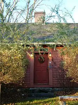 The John Palmer House is located in a rural setting of northern Lisbon, on the west side of North Burnham Highway (Connecticut Route 169) at its junction with Ross Hill Road. The house is set on 38 acres (15 ha) of land, and is set back a modest distance from the road, from which it separated by a stone wall and mature trees. The main part of the house is a 1+1⁄2-story wood-frame structure, with a side-gable roof, central chimney, and clapboarded exterior. It is oriented with its main facade to the south, with additions extending to the rear (north). The facade is five bays wide, with a center entrance topped by a four-light transom window. The interior, carefully restored after a 1968 fire, has the main parlor to the left, but deviates from typical period plans by placing the stairs to the upper level in the rear keeping room, instead of in the entry vestibule.[2]