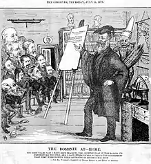 Paterson's "pedagogic" approach is alluded to in this 1878 cartoon by the Port Elizabeth Observer (a newspaper that supported him). Paterson is shown lecturing the MPs of parliament on budgeting and finance.